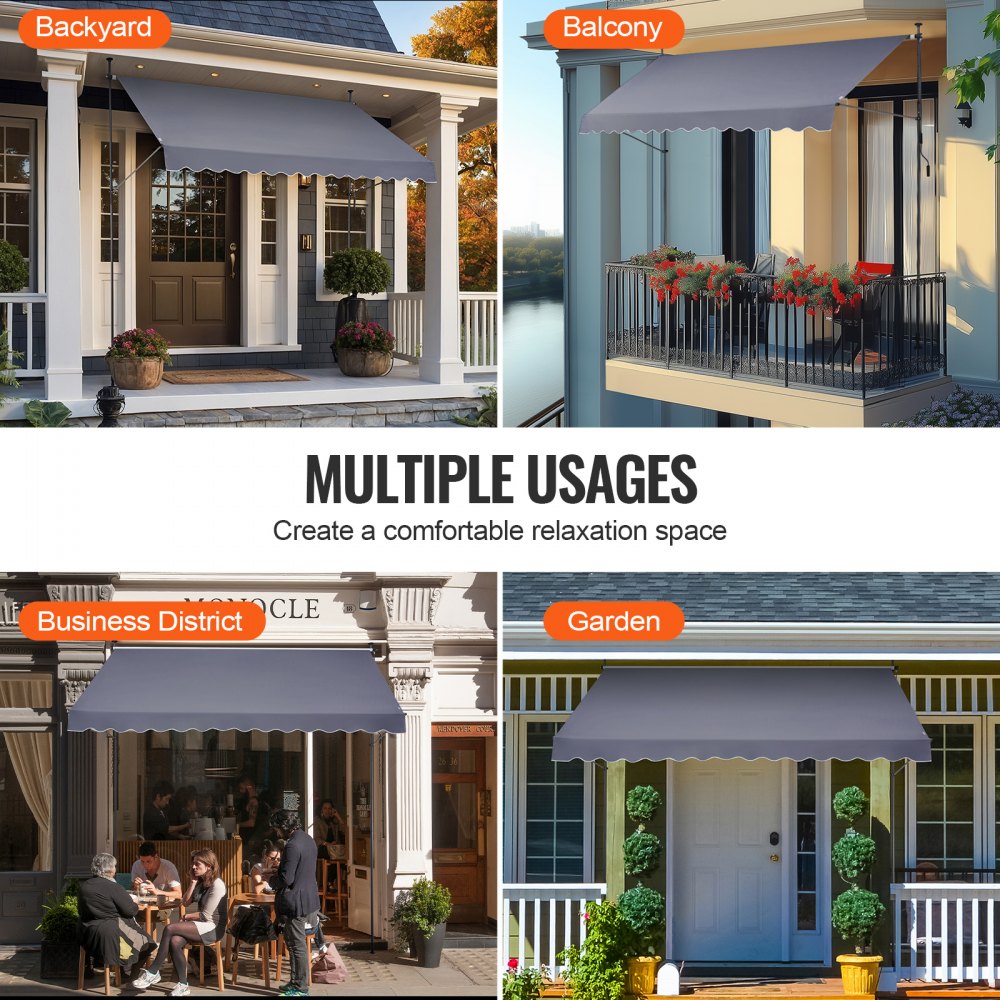 Všestranné použití: Tyto markýzy na terasu jsou ideální pro zahrady, balkony a terasy a poskytují stylovou ochranu před sluncem a pohodlí a promění váš venkovní prostor v relaxační oázu.