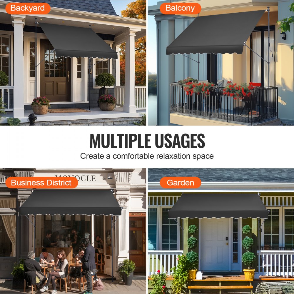 Všestranné použití: Tyto markýzy na terasu jsou ideální pro zahrady, balkony a terasy a poskytují stylovou ochranu před sluncem a pohodlí a promění váš venkovní prostor v relaxační oázu.
