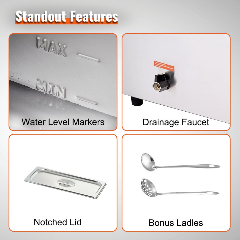 Elektrický ohřívač jídla VEVOR, komerční, pracovní deska, bufet, 6*8 qt, pánev, lázeňská lázeň | Technologie | Originalnitextil.cz