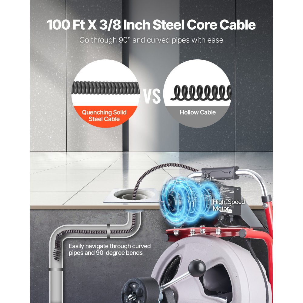 Efektivní odstraňování ucpání: Čistič odpadů VEVOR je vybaven automatickým systémem podávání, který zasouvá a vysouvá kabel do odpadních trubek. Díky ovládání chodu vpřed/vzad a vzduchem aktivovanému nožnímu spínači je manipulace s kabelem ještě snazší.