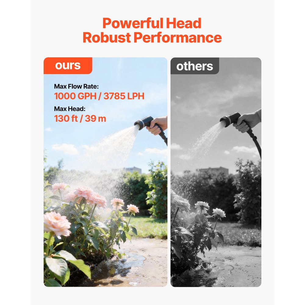 Výkonný výkon: Toto mělké studniční čerpadlo s nádrží poskytuje až 1000 GPH / 3785 LPH a maximální výtlačnou výšku 130 ft / 39 m, snadno si poradí s rozsáhlým zavlažováním zahrad a trávníků a zároveň poskytuje dostatečný přísun vody se zvýšeným tlakem pro domácí použití.