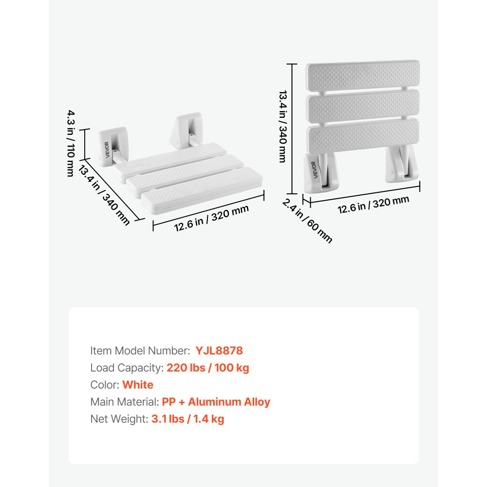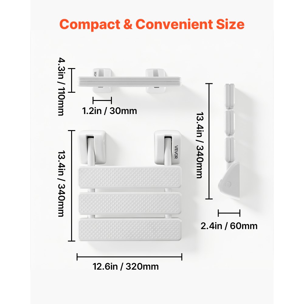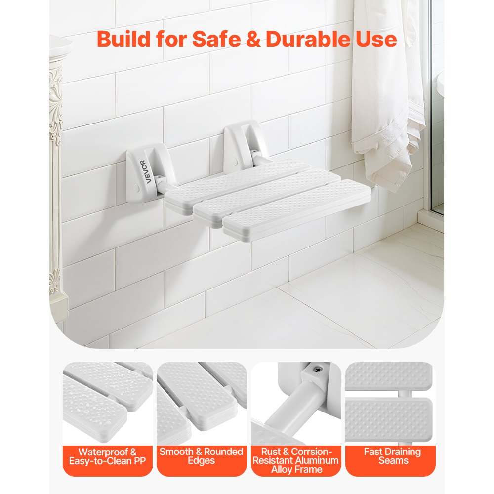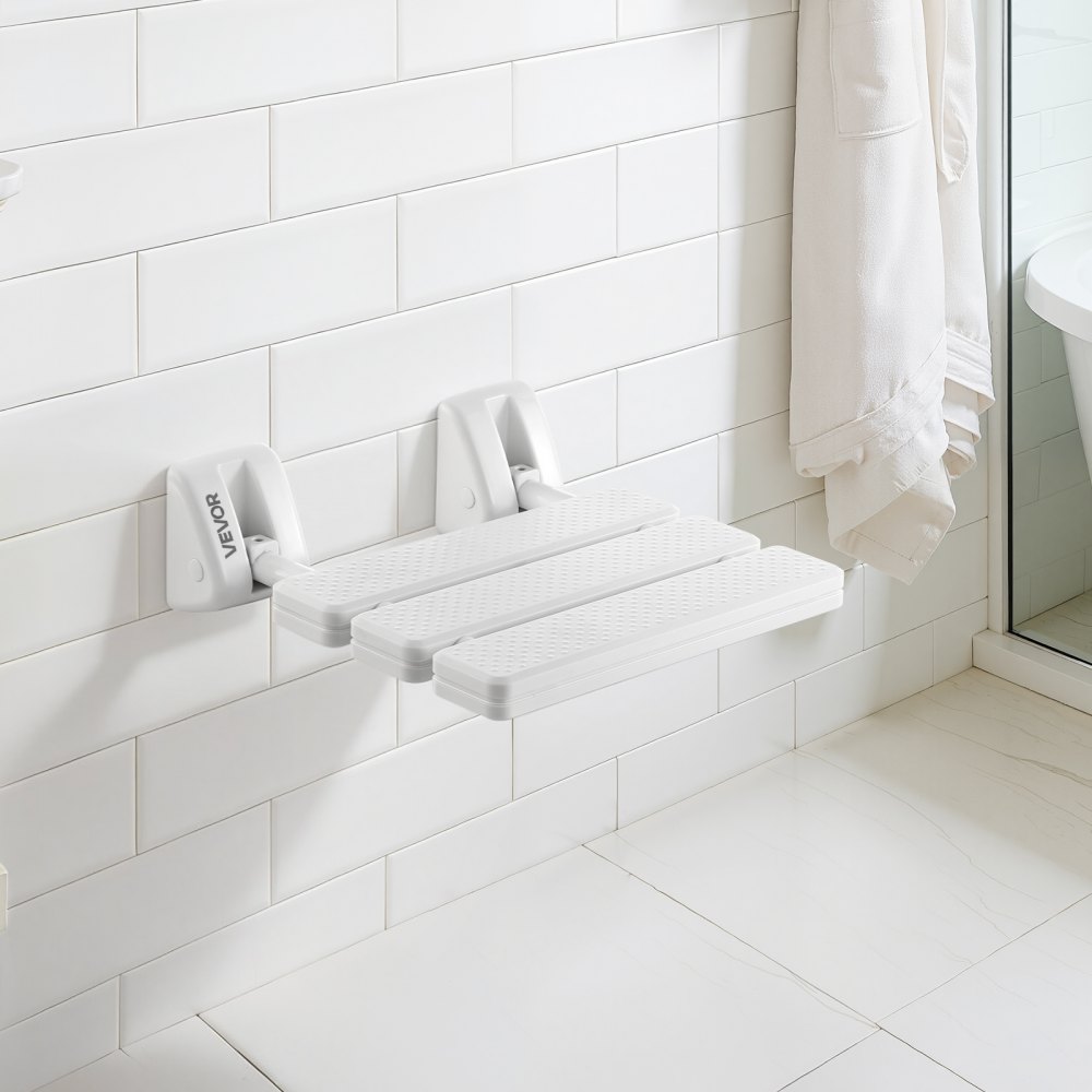 Skládací a prostorově úsporné: S nástěnným sprchovým sedátkem VEVOR si sprchování udělejte pohodlnější a pohodlnější. Když se nepoužívá, dá se úhledně složit ke zdi, čímž udržíte koupelnu uklizenou a maximalizujete tak dostupný prostor.