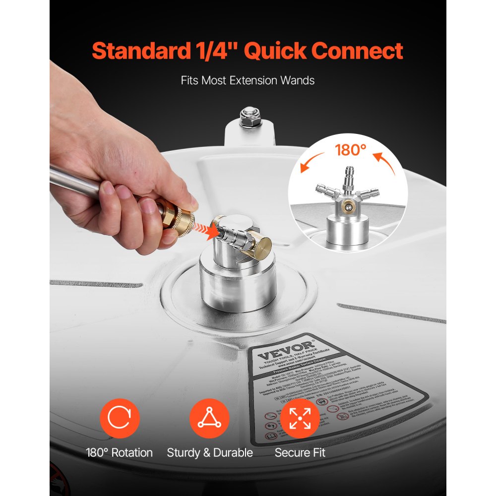 φ18 palců Rychlé a efektivní: Čistěte více a rychleji! Díky výkonnému průtoku 4 galony/min tento tlakový čistič povrchů s průměrem φ18 palců vyčistí každý centimetr, takže je ideální jak pro velké úkoly, tak pro každodenní čištění. Zvládněte práci rychle a bez námahy – ušetříte tak čas a energii!