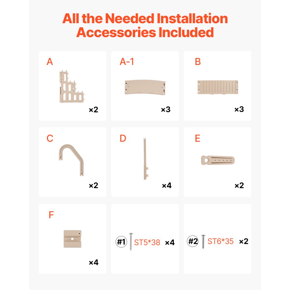 Kompletní sada příslušenství: Po dodání můžete žebřík rychle sestavit. Naše upevňovací desky se dodávají s předvrtanými otvory, takže pro snadnou instalaci stačí pouze změřit a vyvrtat. Pro betonové a dlaždicové podlahy je nutné zakoupit vlastní rozpěrné šrouby.