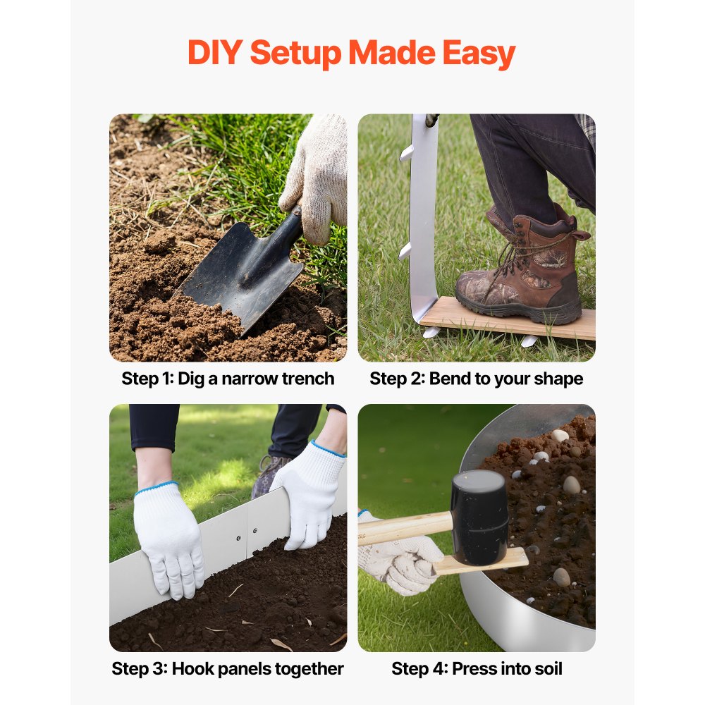 Flexibilní design vhodný pro zahradu: Tato ocelová zahradní obruba se snadno ohýbá a kopíruje rovné linie nebo rohy. Flexibilní konstrukce umožňuje individuální uspořádání a zároveň pomáhá okrajům zahrady vypadat čistě a dobře tvarovaně.