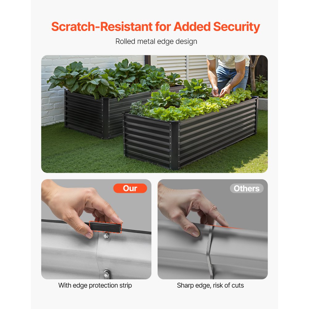 Kovový vyvýšený záhon VEVOR, venkovní pozinkovaný květináč o rozměrech 6 x 3 x 2 stopy, s otevřeným dnem, velký vyvýšený záhon pro pěstování zeleniny, květin, bylin a sukulentů, tmavě šedý