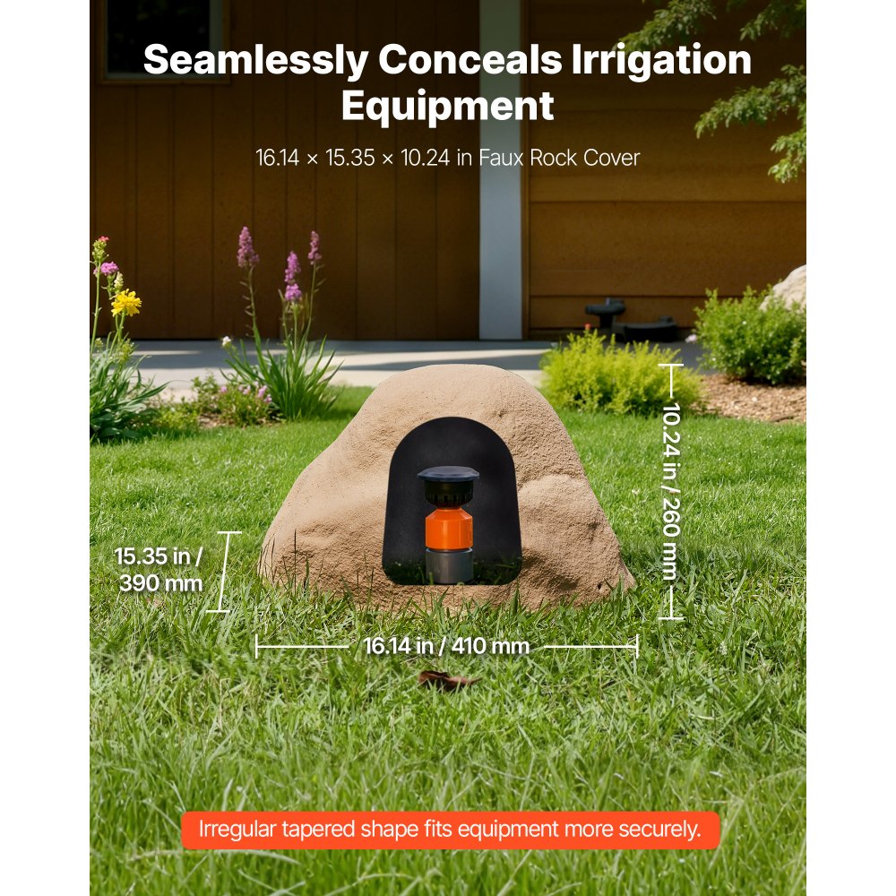 Prémiový kryt zařízení: Náš kryt z umělého kamene, vyrobený ze 100% recyklovatelného HDPE, je odolný vůči tlaku a prasklinám. Zakrývá studny, potrubí a ventily sprinklerů, aby se zabránilo jejich poškození. Je odolný vůči slunci i dešti, čímž prodlužuje životnost zařízení.