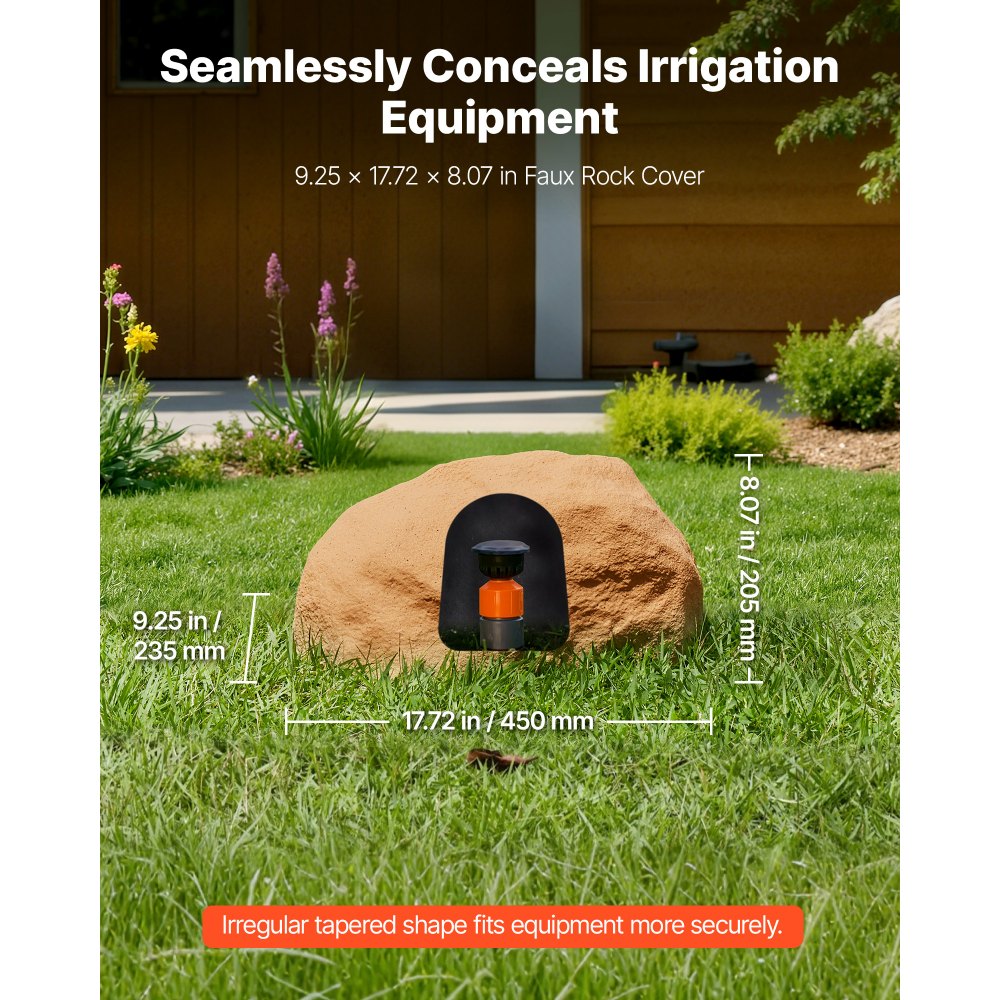 Prémiový kryt zařízení: Náš kryt z umělého kamene, vyrobený ze 100% recyklovatelného HDPE, je odolný vůči tlaku a prasklinám. Zakrývá studny, potrubí a ventily sprinklerů, aby se zabránilo jejich poškození. Je odolný vůči slunci i dešti, čímž prodlužuje životnost zařízení.