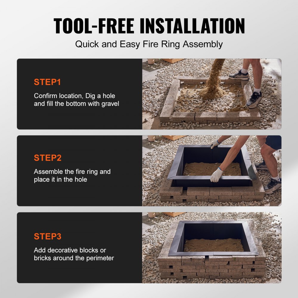 Ohniště VEVOR, vnější průměr 42x42 palců / vnitřní průměr 36x36 palců, čtvercová vložka do ohniště o výšce 10 palců, odolná vložka z uhlíkové oceli, kruh na táborák, pro kutily, nad nebo do země, pro venkovní kempování, ohně | Zahrada a trávník | Originalnitextil.cz