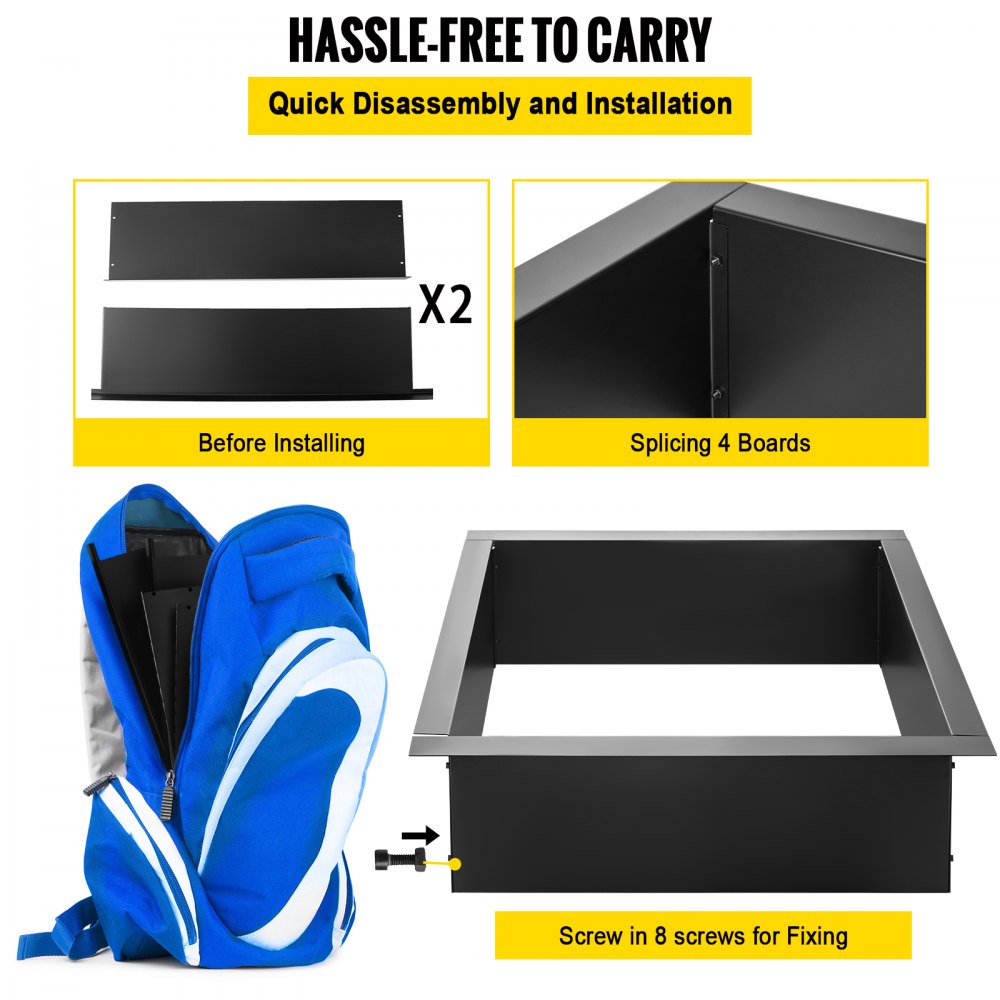 Snadná instalace: Instalace našich ocelových krbových kruhů je velmi pohodlná a bez použití nářadí. Čtyři ocelové desky lze pevně spojit osmi šrouby. Šrouby stačí utáhnout pouze ve spojovací části, takže si ušetříte námahu.