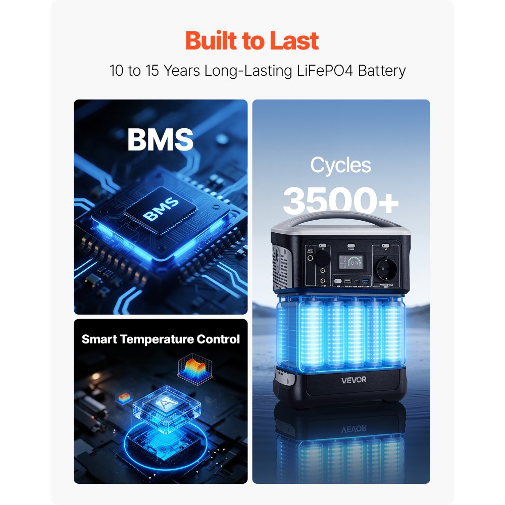 Vyrobeno pro dlouhou životnost: Vyrobeno s prémiovou LiFePO₄ baterií, která vydrží až 3500 nabíjecích cyklů a poskytuje životnost 10 až 15 let. Chráněno pokročilým systémem BMS pro zvýšenou bezpečnost a zajištění spolehlivějšího a dlouhodobějšího napájení.