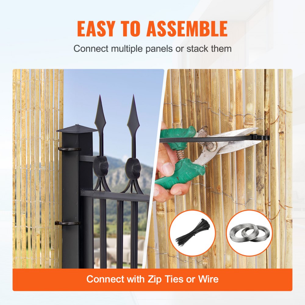 Snadná instalace: Bambusový plot o výšce 1,8 m jednoduše rozbalte a připevněte k jakémukoli zábradlí nebo sloupku pomocí vhodných upevňovacích prvků (jako jsou stahovací pásky nebo drát). Snadná instalace na rovných nebo zakřivených površích, což šetří čas a námahu. Před nákupem prosím přesně změřte prostor. Povrch plotu může mít drobné třísky; doporučujeme během instalace používat rukavice.