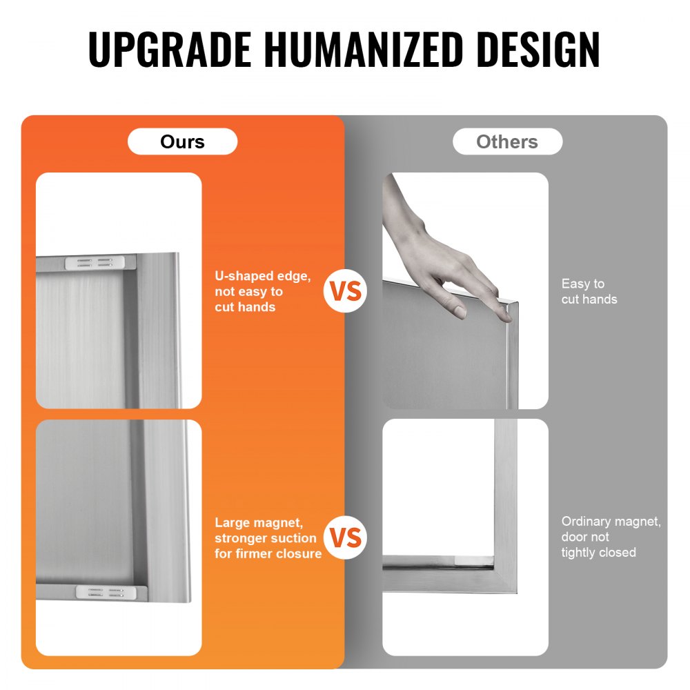 Přístupové dvířka k grilu VEVOR, dvojitá venkovní kuchyňská dvířka 914x534 mm, nerezová ocelová dvířka zapuštěná do zdi, svislé dvířka na zeď se zapuštěnými úchyty, pro grilovací ostrůvek, grilovací stanici, venkovní skříňku | Zahrada a trávník | Originalnitextil.cz