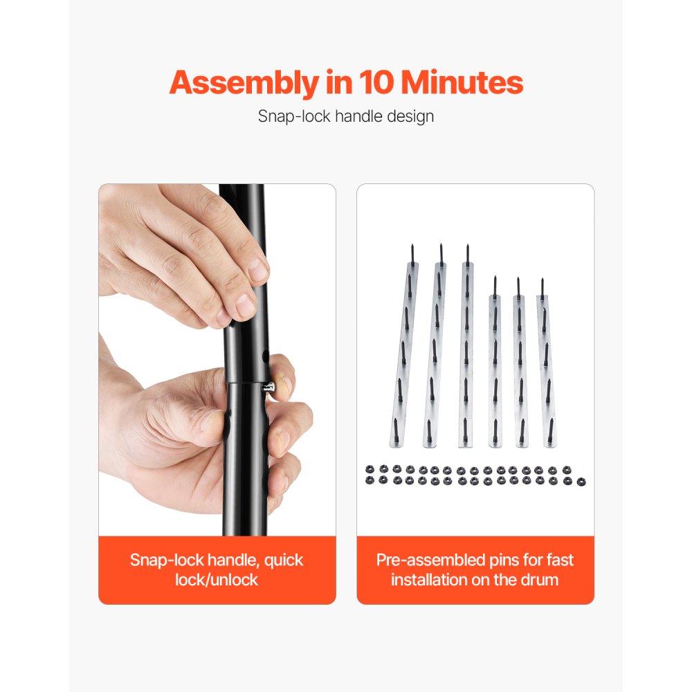 Rychlé nastavení za 10 minut: Hroty jsou dodávány předinstalované, takže můžete začít používat rolovací provzdušňovač trávníku ihned po vybalení z krabice. Pružinová rukojeť se rychle zamyká a odemyká, takže celý produkt sestavíte za pouhých 10 minut. Součástí dodávky je návod k použití, který obsahuje snadno srozumitelné pokyny a bezpečnostní tipy.