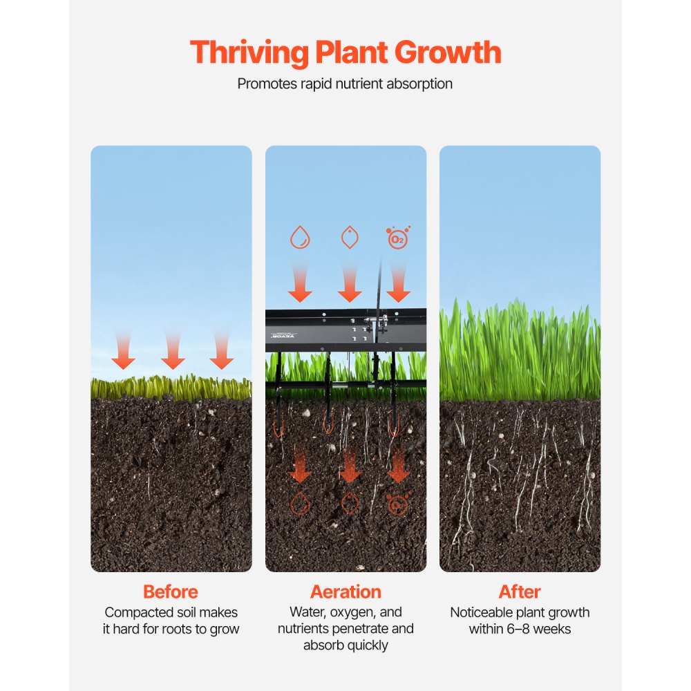 Podporuje růst rostlin: Tento provzdušňovač s vlečnou zátkou zlepšuje strukturu půdy vytvářením otvorů, které rostlinám dodávají více vody a kyslíku, čímž zabraňuje žloutnutí nebo hnilobě způsobené nedostatkem kyslíku a vody. Během 6-8 týdnů uvidíte znatelný růst vašich rostlin.
