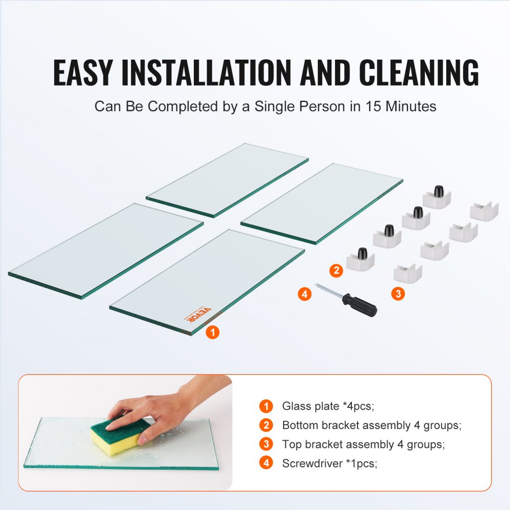 Větrná clona VEVOR pro plynové ohniště pro čtvercový krbový stůl, čirá tvrzená větrná clona pro ohniště 493 x 493 x 191 mm, 8mm silný čtvercový skleněný štít, skleněný panel s tvrdým rohovým držákem a nožičkami | Zahrada a trávník | Originalnitextil.cz