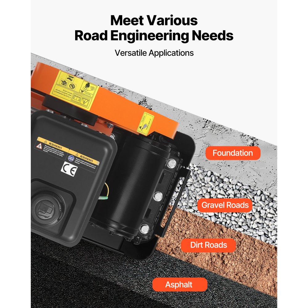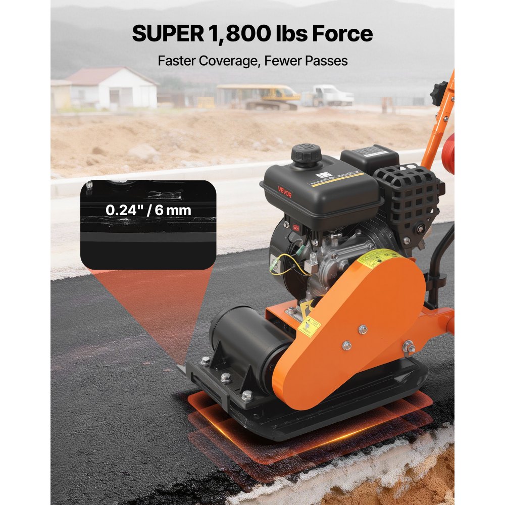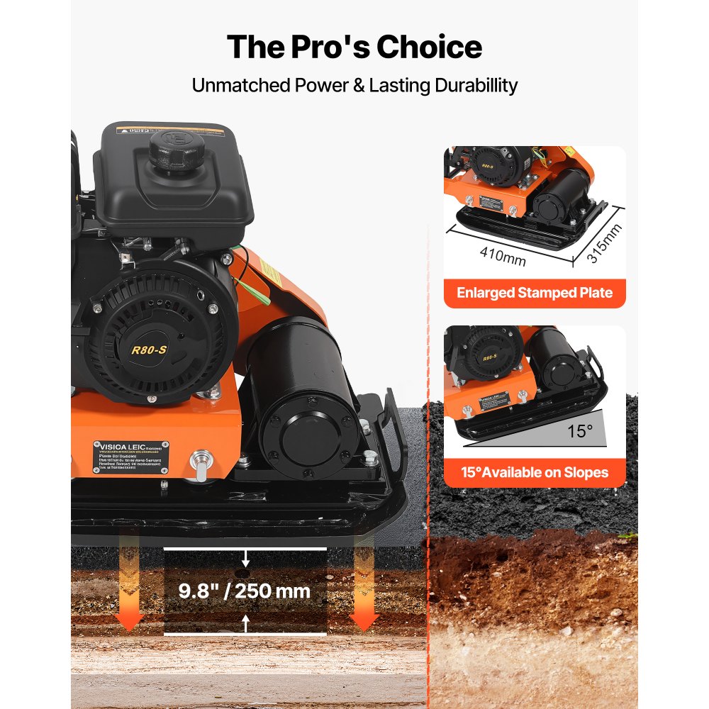 Výkonný motor: Naše vysoce výkonná hutnicí deska je vybavena výkonným motorem, který vám pomůže s lehkostí zvládnout práci. Benzínový motor o výkonu 2,0 HP dosahuje až 5 250 vibrací za minutu a hloubka hutnění 9,8 palce (243 mm) dosahuje optimálních výsledků hutnění.