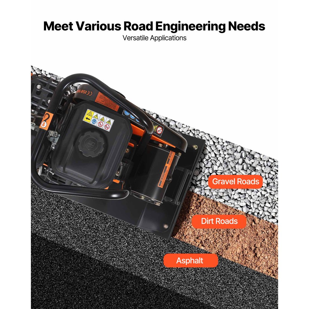 Vibrační deska VEVOR, benzínový motor 6,5 HP 196 CC, vibrační pěch 5600 VPM, hutnicí síla 10,5 kN, deska 51 x 37 cm, ručně vedený pěch pro dlažbu, terénní úpravy, asfalt, základy, zeminu | Zahrada a trávník | Originalnitextil.cz
