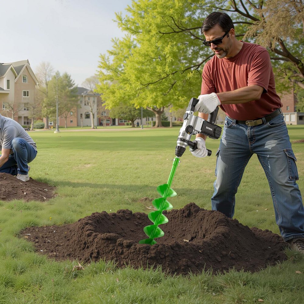 Široká kompatibilita: Náš spirálový vrták je navržen tak, aby pasoval na jakoukoli vrtačku s průměrem sklíčidla 20 mm nebo menším. Jednoduše nasaďte vrták na standardní elektrickou nebo benzínovou vrtačku a můžete ihned začít. Tip: Tento produkt není dodáván s konverzním adaptérem, musíte si ho koupit sami.