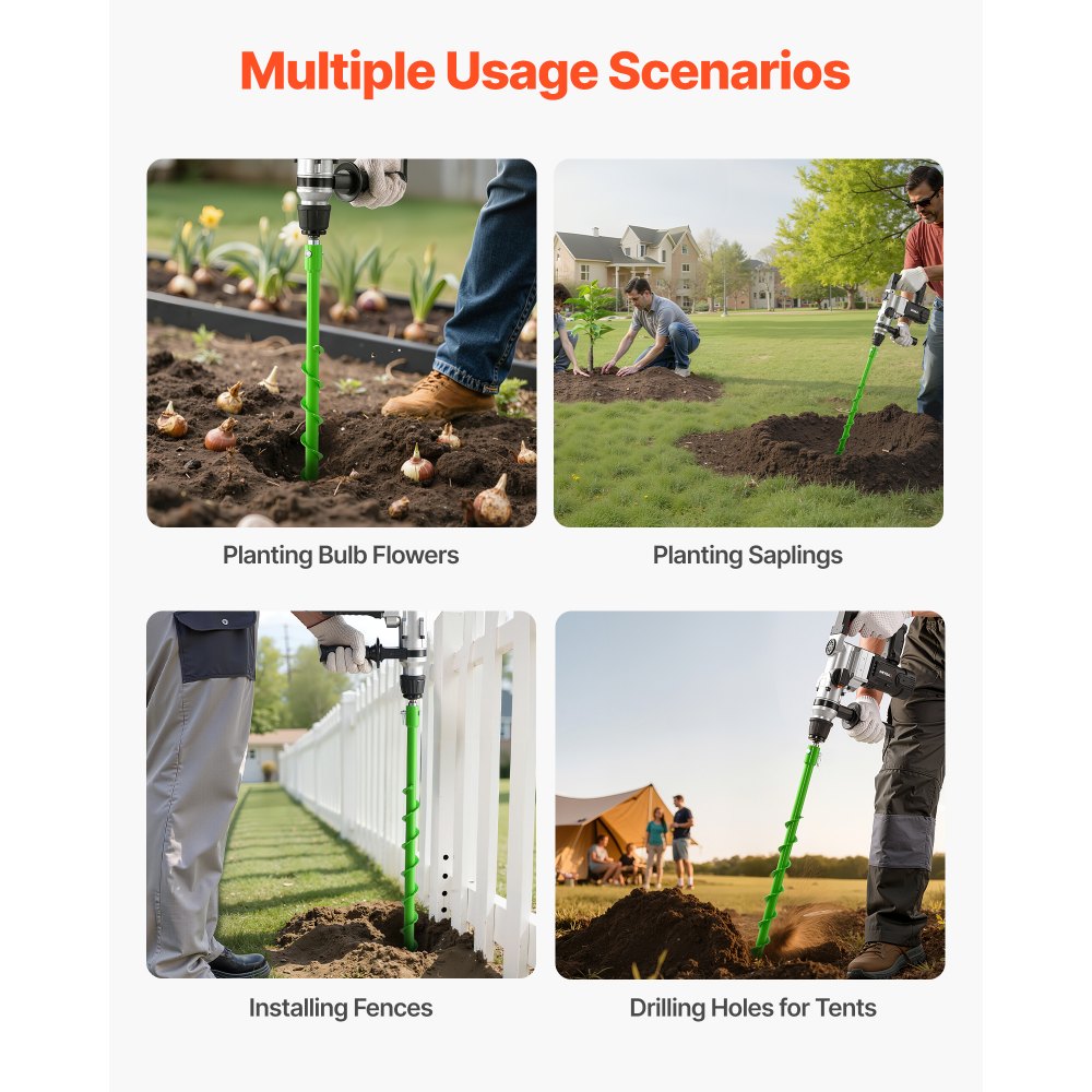 Víceúčelový zahradnický nástroj: Vrták s vrtákem na sázení je nejen vhodný pro cibuloviny, květiny a zeleninu, ale také skvělý pro vrtání otvorů pro plotové sloupky, stany nebo venkovní dekorace. Nezbytný pomocník pro zahradničení, krajinářství i kutilské projekty.