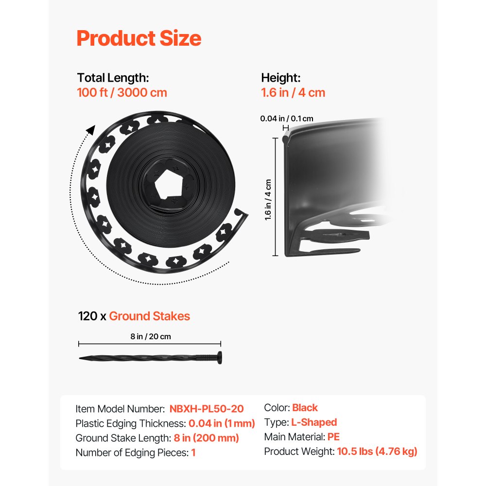 Zahradní obruba 30,6 m x 4,2 cm: Tato 30,6 m dlouhá plastová zahradní obruba v rolích je ideální pro instalaci na dlouhé ohraničení, podél zdí, chodníků nebo velkých zahradních ploch. Střední výška 4,2 m se dobře hodí k oddělení záhonů, štěrkových cest nebo okrajů trávníků v domácích zahradách.