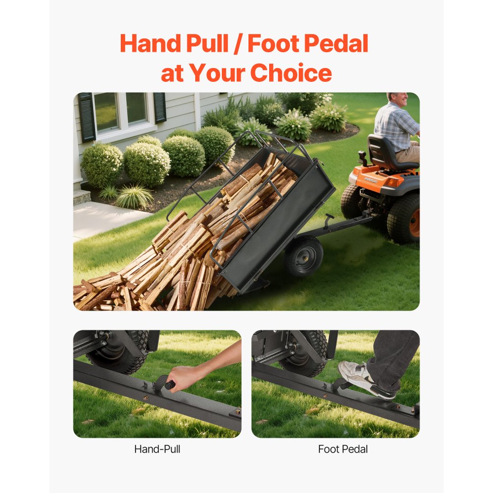 Zahradní přívěs VEVOR, objem 17 kubických stop a nosnost 272 kg, přívěs pro přepravu čtyřkolek a UTV, tažný ocelový sklápěcí vozík s 16\ | Zahrada a trávník | Originalnitextil.cz