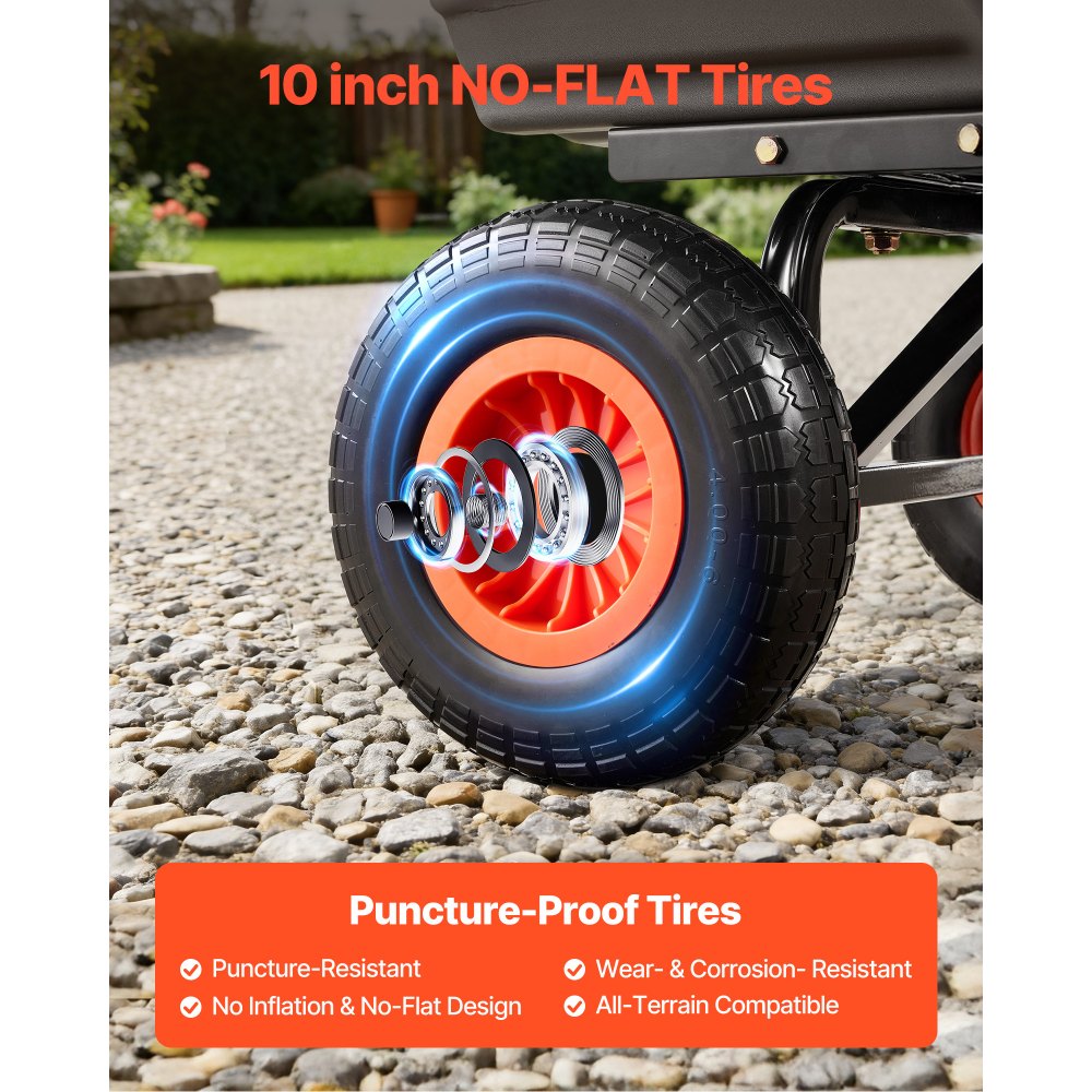 Vysoká nosnost: Náš zahradní sklápěcí vůz pojme až 362 kg zeminy, palivového dřeva, štěrku nebo plodin. Na jednu cestu uveze více, čímž se sníží nutnost opakovaných přeprav a zajistí se plynulejší pracovní postup na zahradě nebo farmě s stabilní ovladatelností při každodenních úkolech.