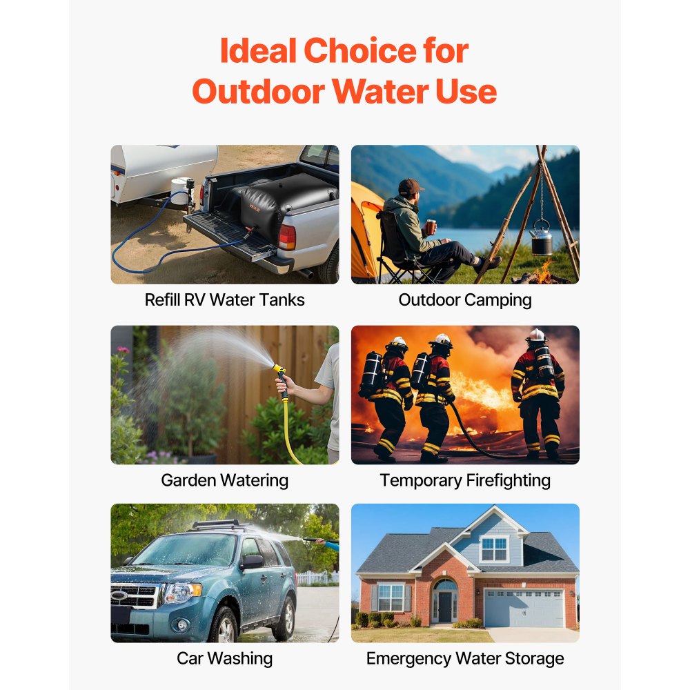 Vak na vodu o objemu 63,4 galonů: Náš PVC vak na vodu má rozměry 39,8 x 23,6 x 17,7 palce a pojme až 240 l / 63,4 galonů – ideální pro zavlažování, zásobování vodou pro karavany nebo nouzové skladování vody. Dodává se s kompletní sadou příslušenství a opravnou sadou pro snadné použití.