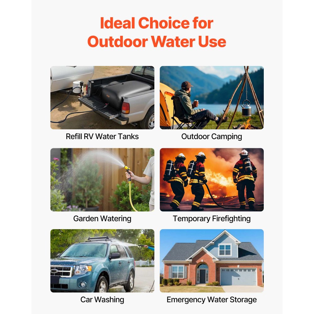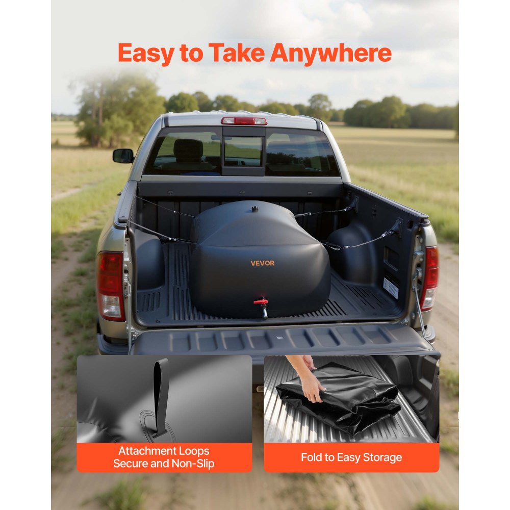 Přenosný a snadno skladovatelný: Přenosný vodní vak je dodáván se čtyřmi zesílenými poutky pro přenášení, která umožňují bezpečné umístění v korbách pickupů, SUV nebo na střeše pro bezpečnou přepravu. Flexibilní PVC materiál se dá složit pro kompaktní skladování, když se nepoužívá, čímž se eliminuje potřeba objemných vodních nádrží.
