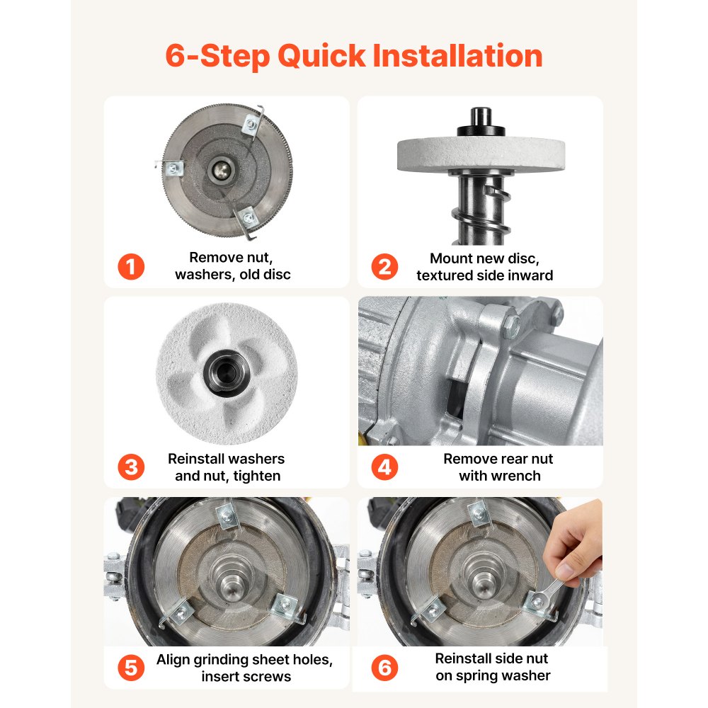 Suché i mokré mletí: Mlecí desky VEVOR 2PCS pro elektrické mlýnky na obilí podporují suché i mokré mletí. Deska pro suché mletí je ideální pro kávová zrna, obiloviny, koření a ořechy a deska pro mokré mletí zvládne ovoce, maso, olejnaté ořechy, cukr a sůl.