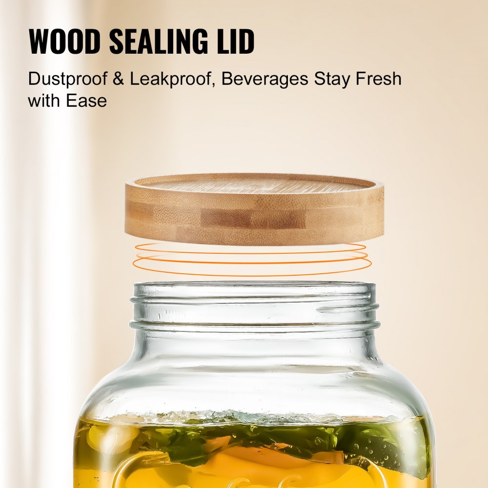 Odnímatelné skleněné víko: Tato nádoba na džus je vybavena odnímatelným skleněným víkem a zabudovaným silikonovým kroužkem, který zajišťuje, že nápoj bezpečně zůstane v šálku. Navíc díky širokému hrdlu si můžete snadno naplnit své oblíbené nápoje dle libosti, ale také si snadno vyčistíte, takže se nemusíte bát, že nalijete příliš mnoho nápoje nebo se s čištěním potýkáte.