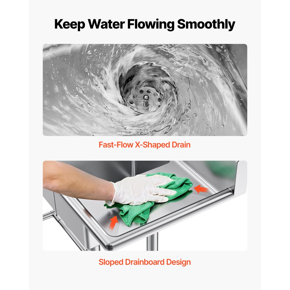 Zesílený rám ve tvaru H: Třídílný dřez je konstruován pro stabilitu a je podepřen zesílenou konstrukcí rámu ve tvaru H, která s jistotou zvládá těžké náklady. Zajišťuje spolehlivý výkon i při velkoobjemových komerčních úklidových úkonech.