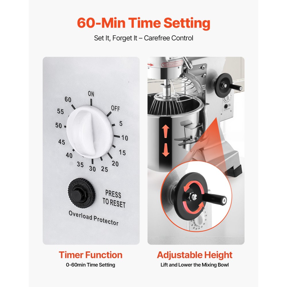 Prémiová kvalita a velká kapacita: Tento průmyslový mixér splňuje hygienické standardy. Všechny části, které přicházejí do styku s potravinami, jsou vyrobeny z nerezové oceli 304 potravinářské kvality. Mísa o objemu 20 qt je dostatečně velká na to, aby najednou smíchala 6,6 libry těsta, a splnila tak vaše různé komerční potřeby.