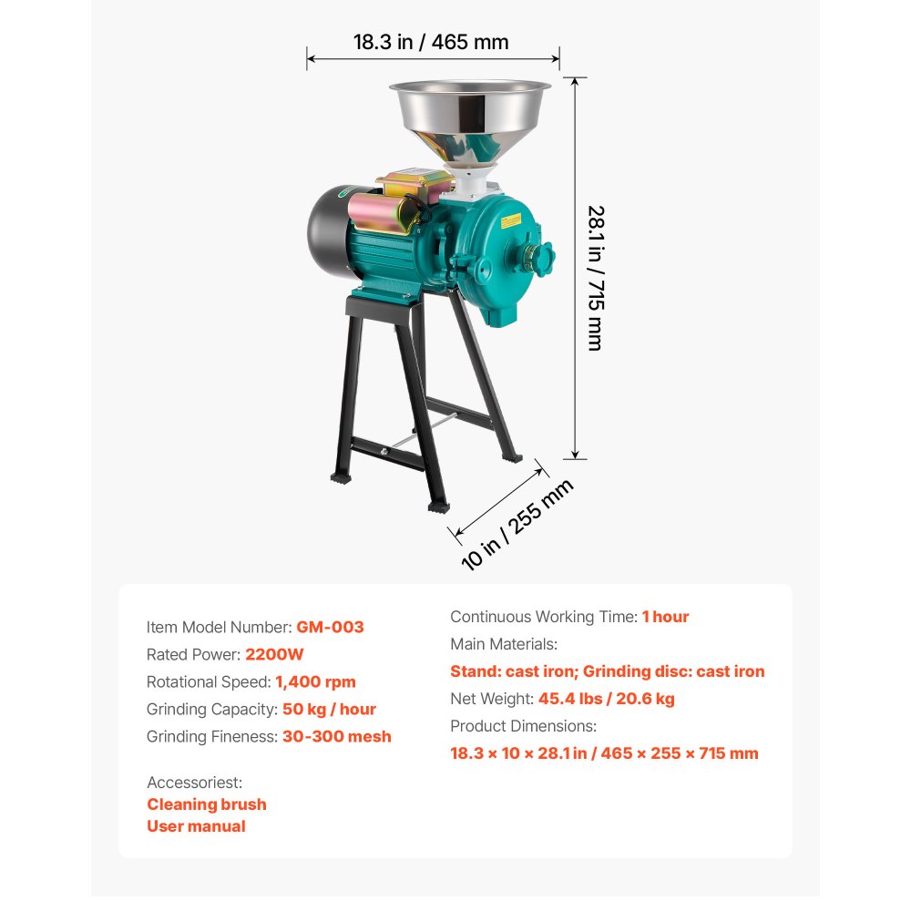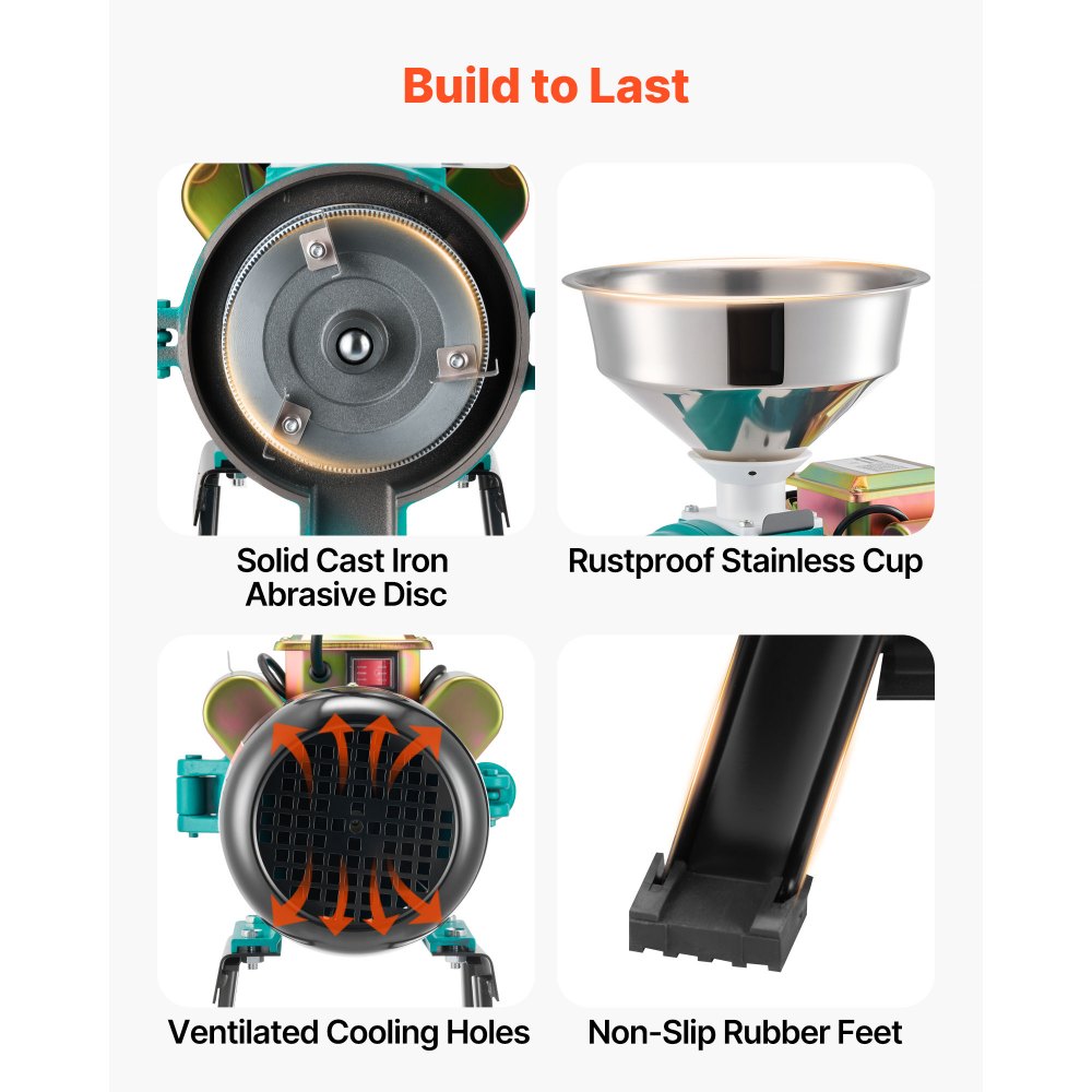 Elektrický mlýnek na obilí VEVOR, 110 lbs/h, komerční mlýnky na koření, 2200W litinový drtič na prášek s protiskluzovými gumovými nožičkami, pro suché obiloviny, koření, obiloviny, kávu, kukuřici a pepř | Zařízení pro přípravu potravin | Originalnitextil.cz
