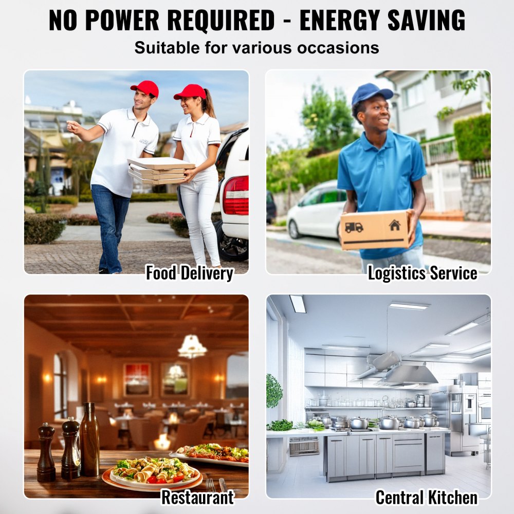 Izolace a udržení čerstvosti: Izolační přepravka na potraviny VEVOR nevyžaduje elektřinu a dokáže udržet jídlo teplé po dobu 4–6 hodin nebo chlazené po dobu 3–5 hodin. Udržuje teplotu a čerstvost, takže se nemusíte obávat, že jídlo vychladne nebo se zkazí, a nepořádku při skladování.