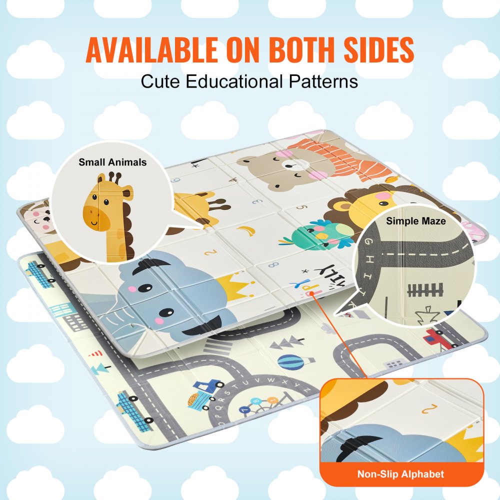 Oboustranný vzdělávací design: Voděodolné hrací podložky jsou oboustranné a na každé straně mají roztomilé vzory, včetně zvířátek, jednoduchých bludišť a vyvýšených písmen a číslic. Tyto vzory nejen poskytují jemnou vizuální a hmatovou stimulaci, ale mají také vzdělávací hodnotu a pomáhají rozvíjet kognitivní a senzorické dovednosti vašeho dítěte. Vyvýšené vzory také nabízejí protiskluzové vlastnosti.