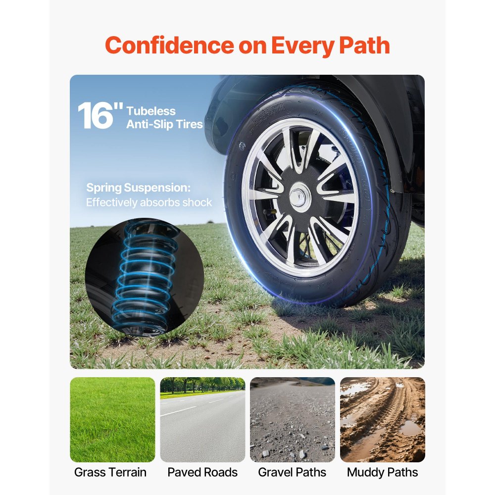 Výkonný výkon: Tato koloběžka pro dospělé a seniory je vybavena bezkartáčovým motorem s vysokým točivým momentem o výkonu 1000 W, který nevyžaduje žádnou údržbu a nabízí delší životnost. Jeho vysoký výkon zajišťuje vynikající nosnost až 226,8 kg, takže výkon není omezen hmotností jezdce.