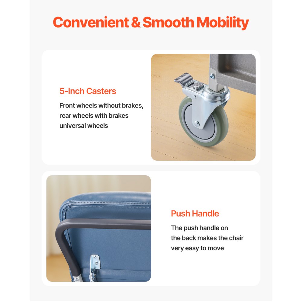 Polohovací křeslo VEVOR Geri, 3polohové polohovací křeslo Geri, pohyblivé lékařské polohovací křeslo se 4 kolečky, měkkým polstrovaným sedákem a odnímatelným podnosem, ideální pro nemocnice, pečovatelské domy a geriatrickou domácí péči. | Zdraví a wellness | Originalnitextil.cz