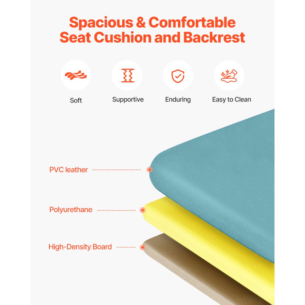 Pohodlné a snadno se čistí: Prostorný sedák a opěradlo jsou vyrobeny z třívrstvé struktury – PVC kůže, polyuretanu a desky s vysokou hustotou – a nabízejí dokonalou rovnováhu mezi měkkostí, oporou, odolností a snadným čištěním. Ideální pro použití v nemocnicích, rehabilitačních centrech, pečovatelských domech a domácí péči.