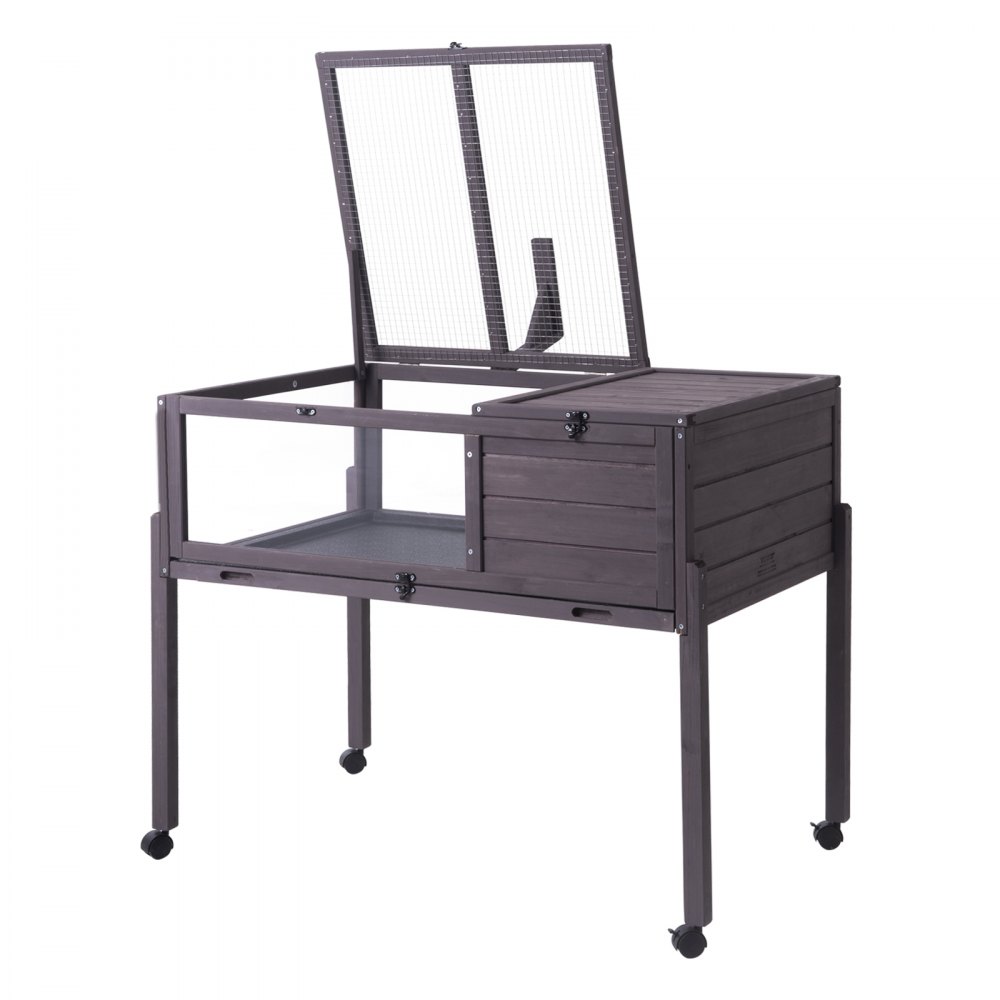 Prostorné dva pokoje: Náš želví domeček má dvě oddělené části: soukromou spací část s masivní dřevěnou střechou a otevřený prostor pro aktivity s kovovým síťovaným oknem. Díky velkým rozměrům 965 x 610 x 825 mm a vysokému stojanu s uzamykatelnými kolečky je ideální pro vnitřní i venkovní použití. Užijte si spaní uvnitř a pobyt na slunci venku!